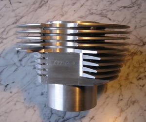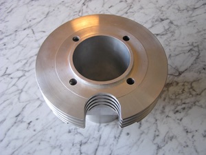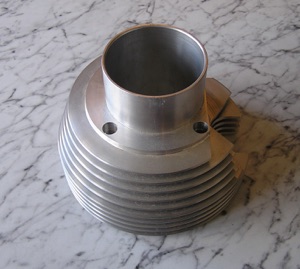 The 7″ diameter Velocette Venom look-a-like barrel is turned from HE 30 billet aluminium alloy and has a Nikasil coated bore.