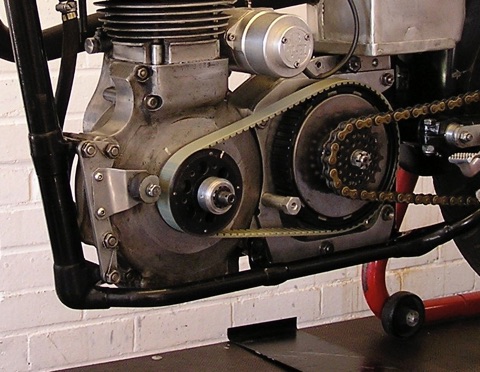 Belt drives have been fitted to the winners of the 2004, 2005 and 2008 Arthur Lavington Memorial Trophy Race for Velocettes.